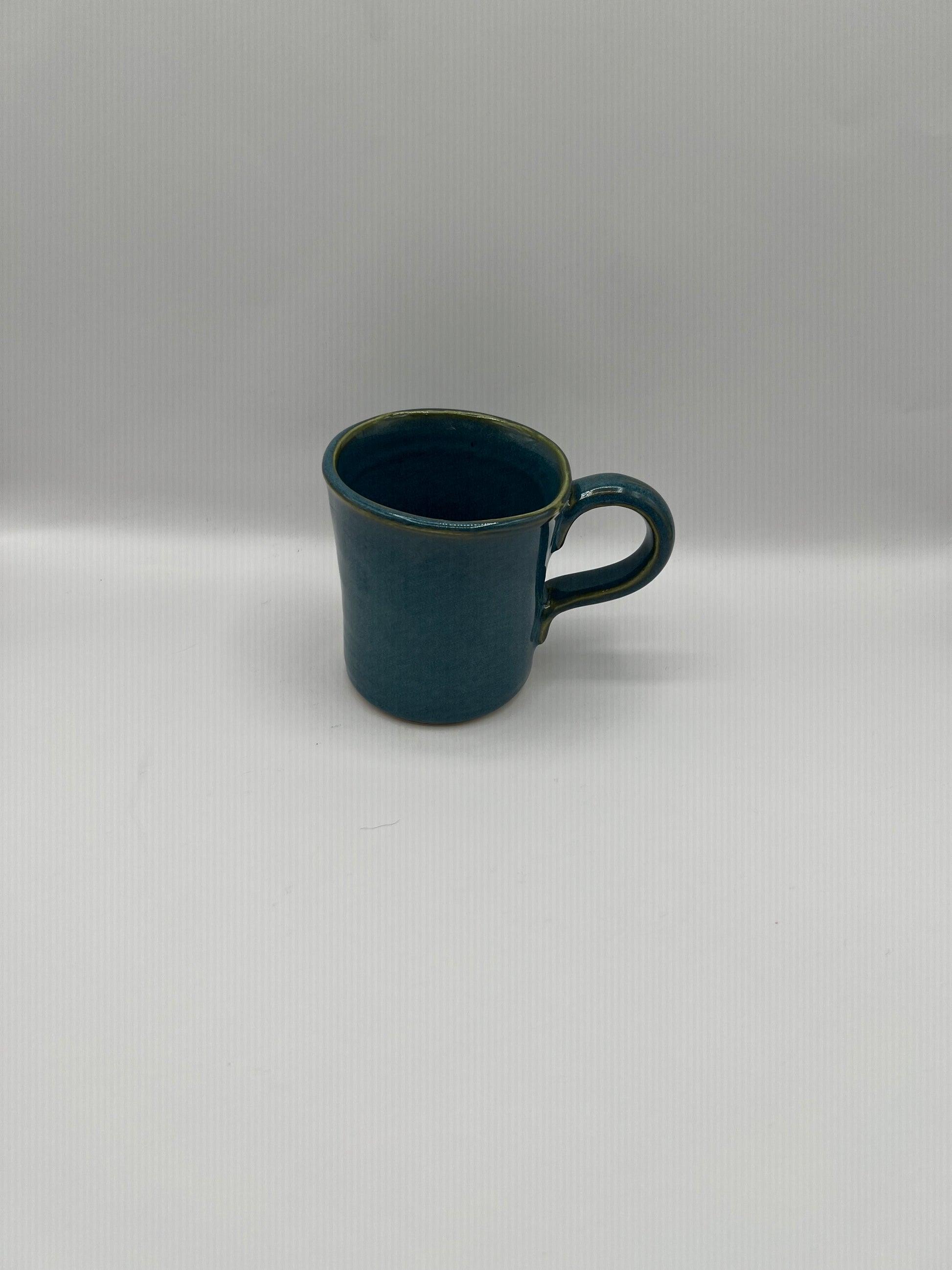 Handmade ceramic Blue River Mug featuring a flowing blue handle. Artisan-crafted, unique, and perfect for coffee or tea lovers who appreciate handcrafted pottery.